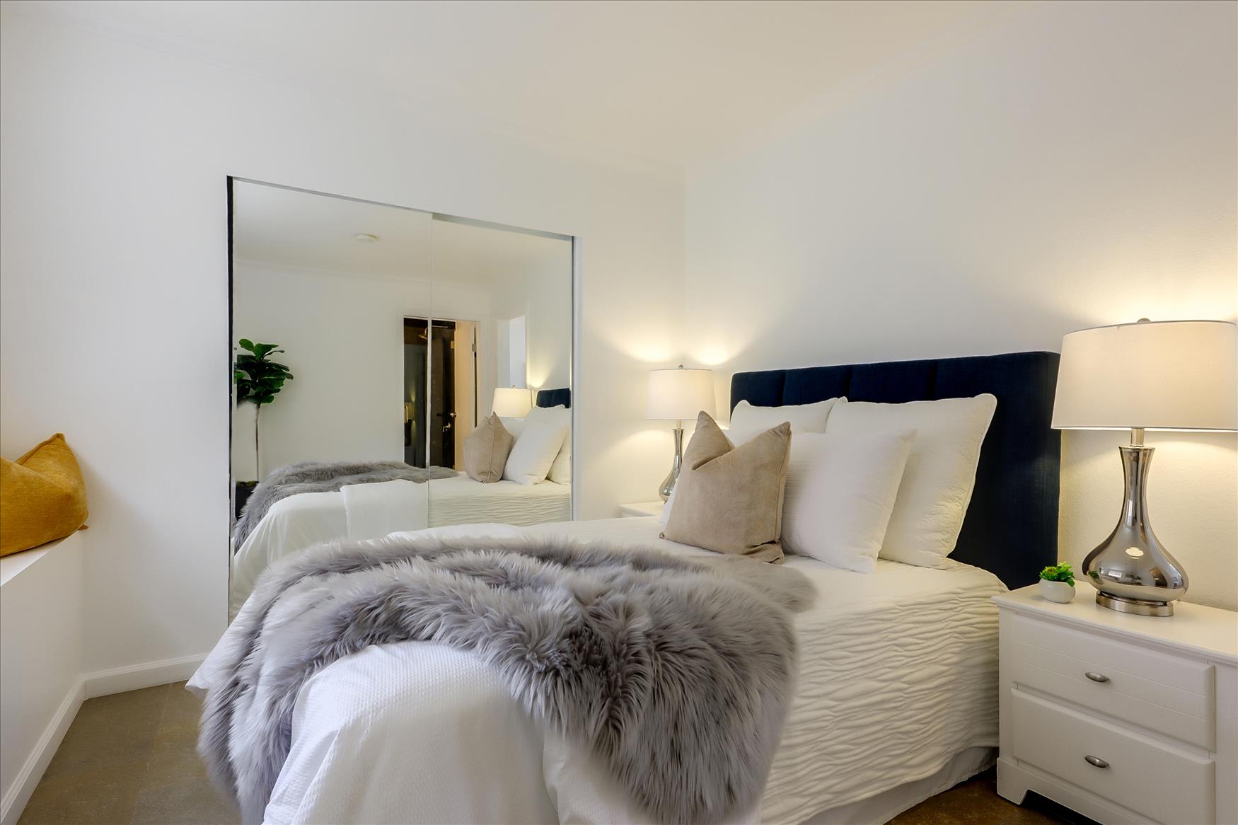 The upstairs has been thoughtfully appointed with two sizable bedrooms and a beautifully updated bathroom. A sumptuous primary suite lies at the lower level, replete with spa-like bathroom with striking tile shower and dual vanities.