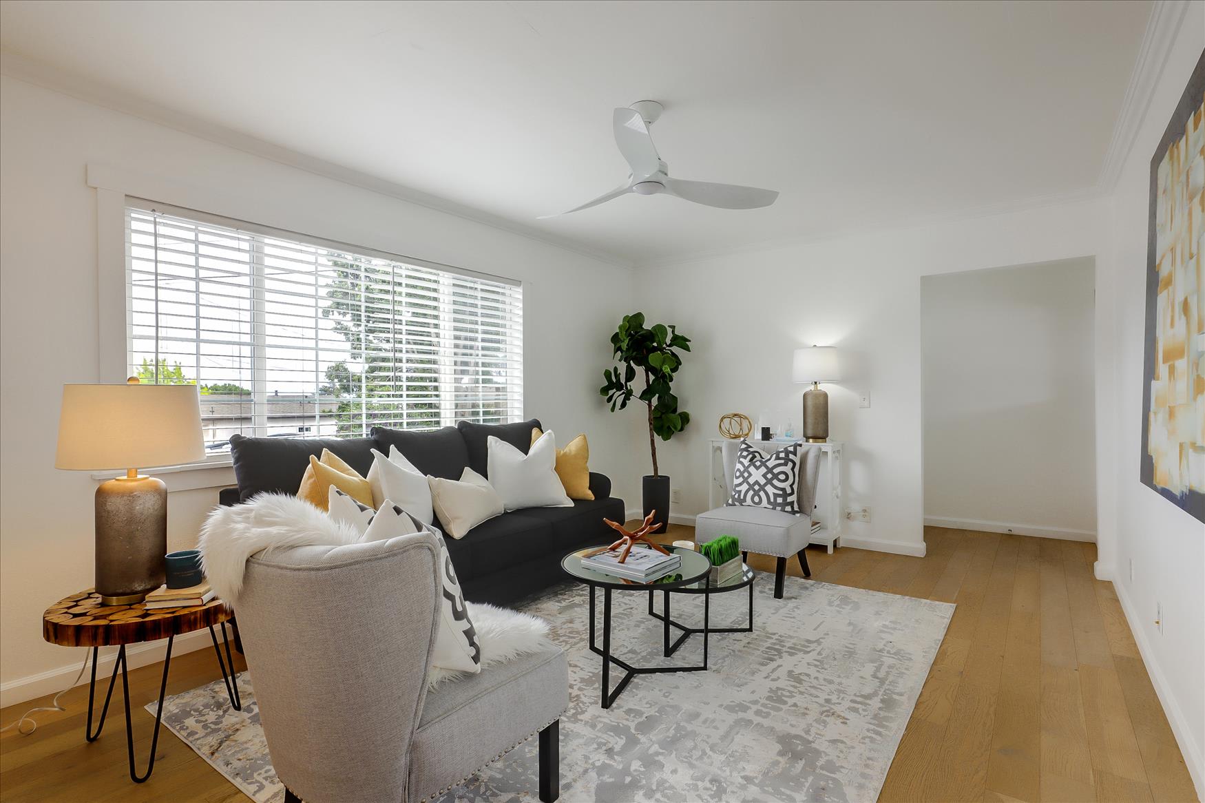 Nestled into the earth’s natural typography, this hillside haven features views of Lake Chabot’s rolling hills from its perch in Hillcrest Knolls. Tucked away in a tranquil, creek-side setting, the 1,454-square foot bungalow affords two-levels of light-soaked living. This beautifully cared-for home features three-bedrooms, two-bathrooms and reveals an airy, open floorplan with light wood floors and appointed with ample windows for warmth and light.