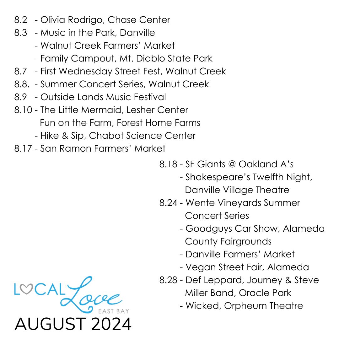 So there you have it! August is bursting with excitement, and we can't wait to see you out and about enjoying everything the Bay Area has to offer. From concerts and festivals to farmers' markets and outdoor adventures, there's something for everyone. So mark your calendars, grab your friends and family, and make the most of this amazing month. Let's make some unforgettable memories together!