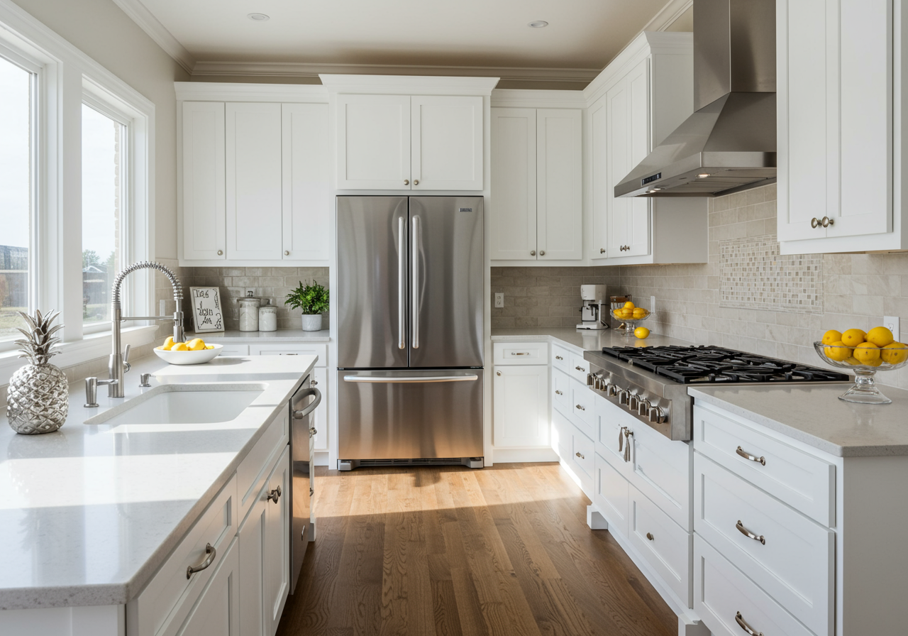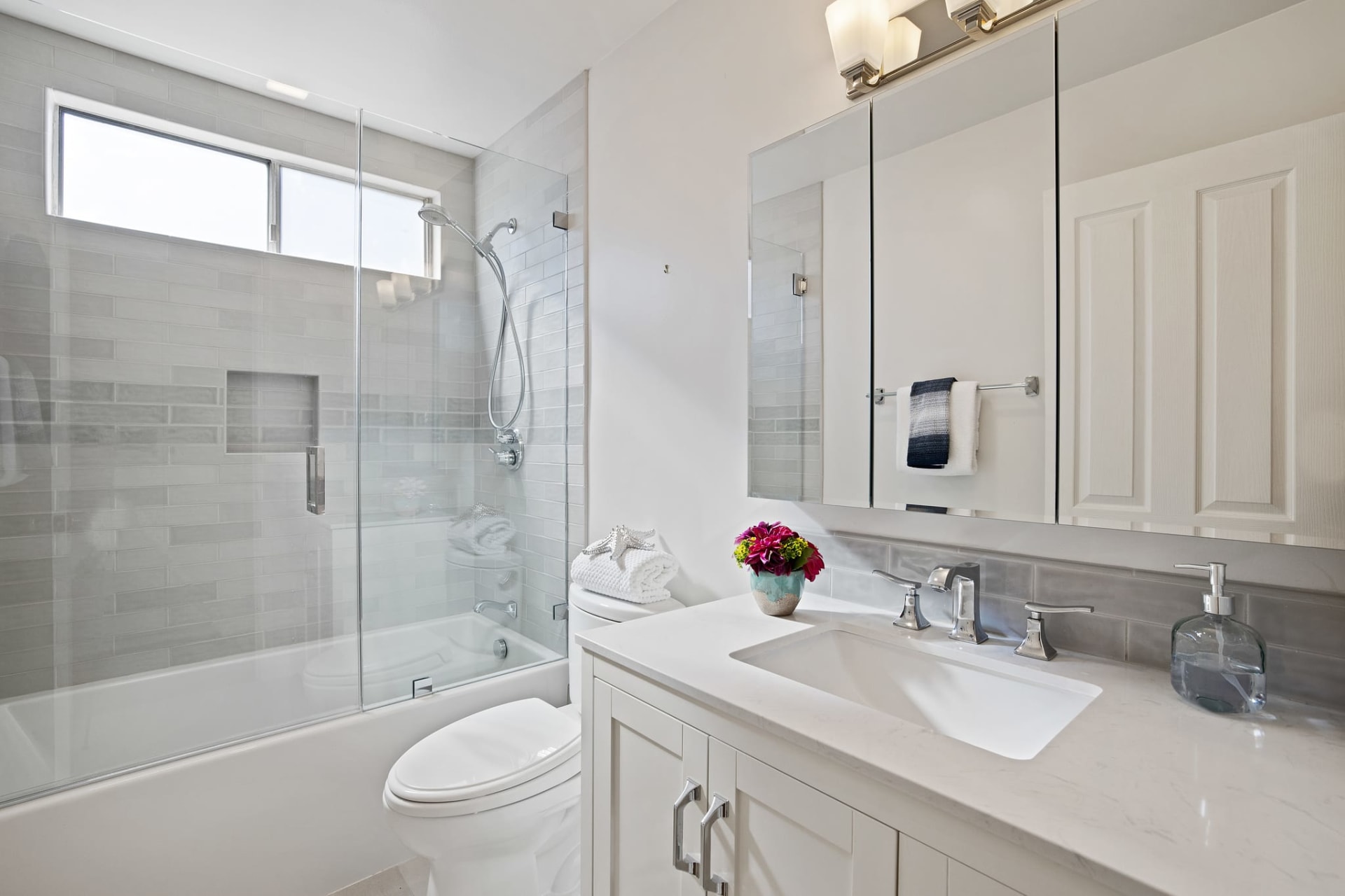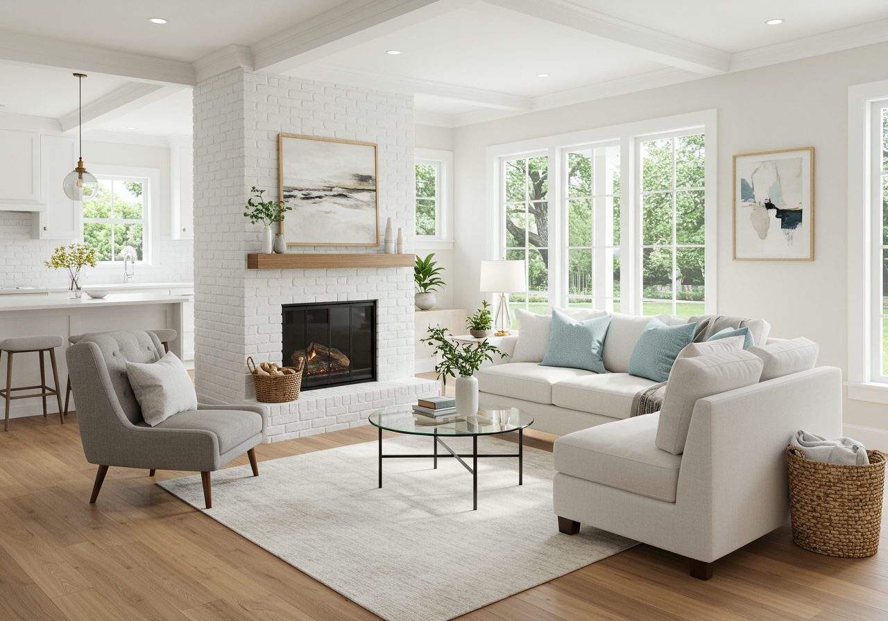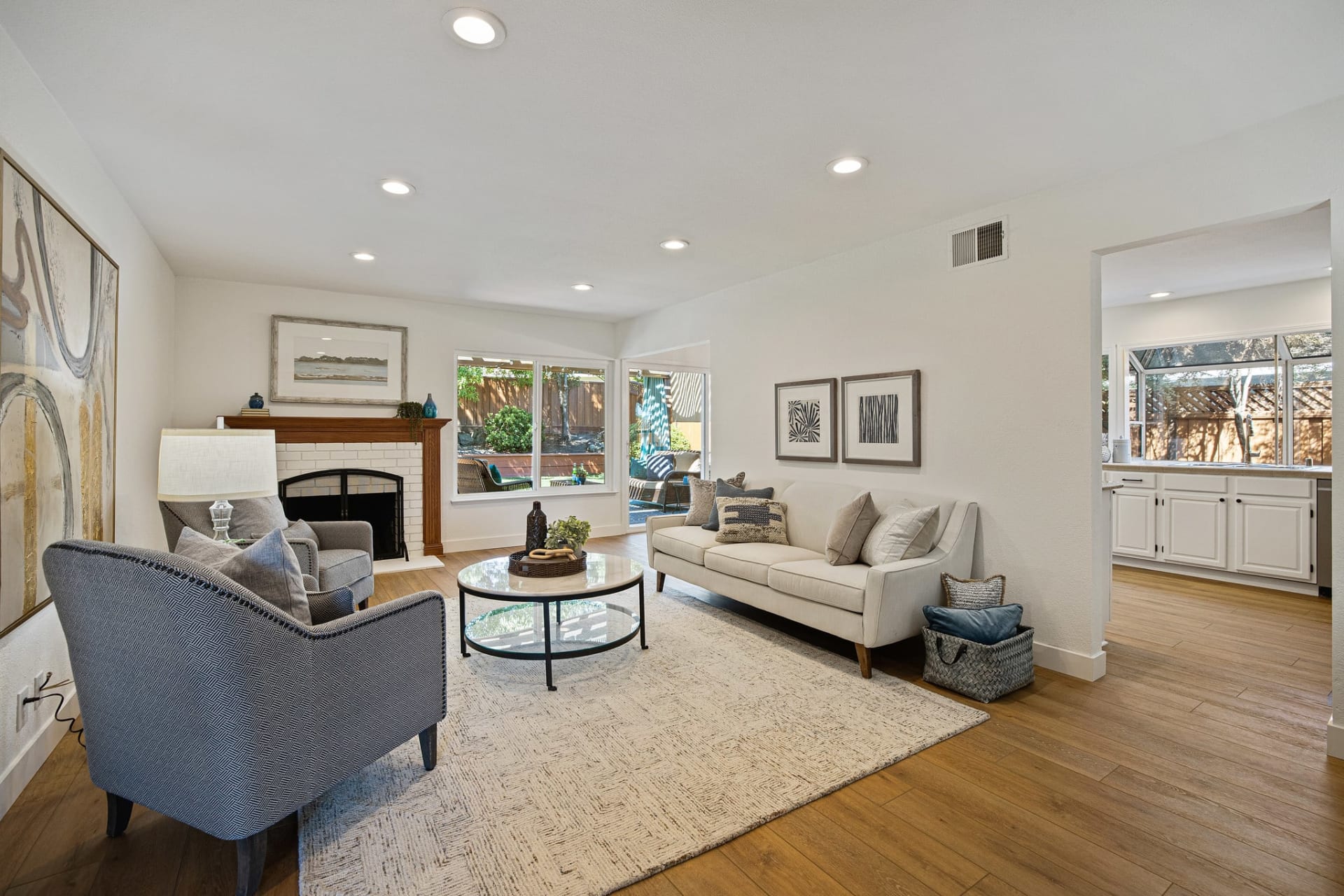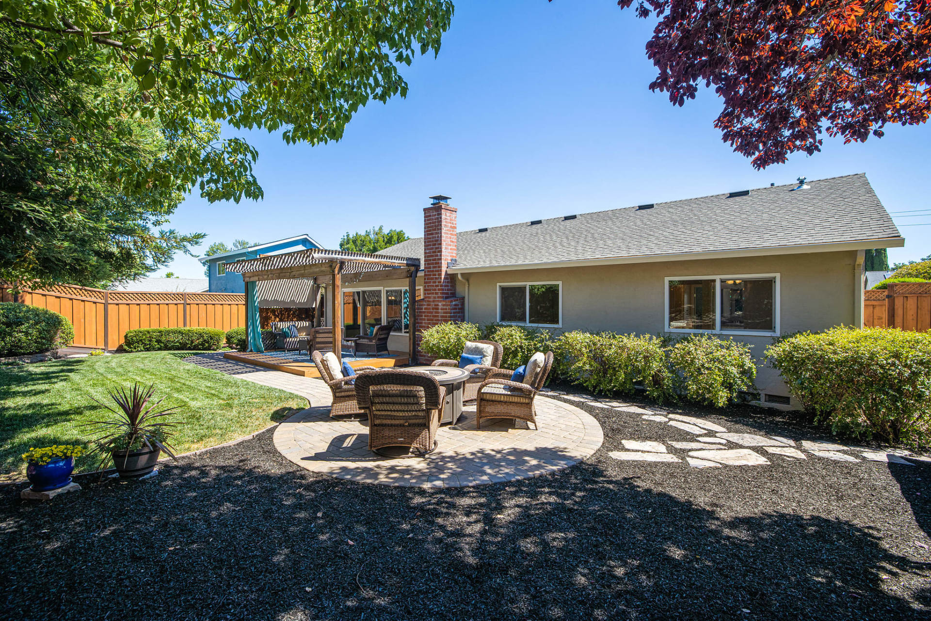Step into this meticulously maintained single story home with a welcoming entry and beautifully landscaped front yard. This home features a light and bright living area, gorgeously remodeled bathrooms, and updated kitchen. Relax in the cozy living room featuring a brick fireplace with wood mantel or entertain in the open kitchen and dining area with a farmhouse lantern fixture. Enjoy the updated cabinetry, abundant storage, stainless steel appliances, gas range, and custom waterfall backsplash in the kitchen. Then transition seamlessly from indoor living to the outdoors and choose seating on the covered deck or roast S’mores at the fire-table. Have fun playing lawn games with friends and relax in the privacy the mature evergreen trees afford.