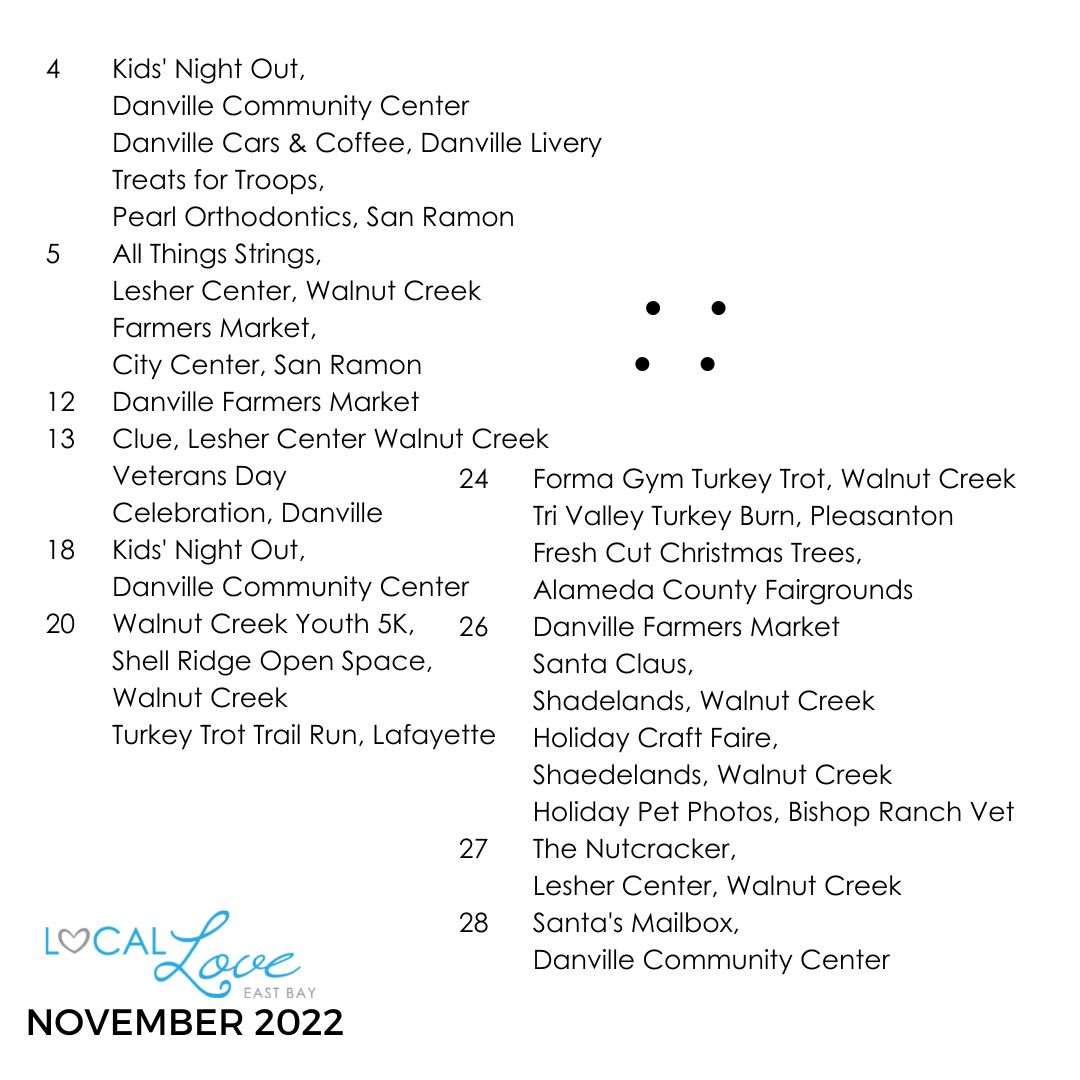 November is a busy time of year as we start to look forward to the holidays and the end of the year. There's a lot of events to choose from in the East Bay this month.