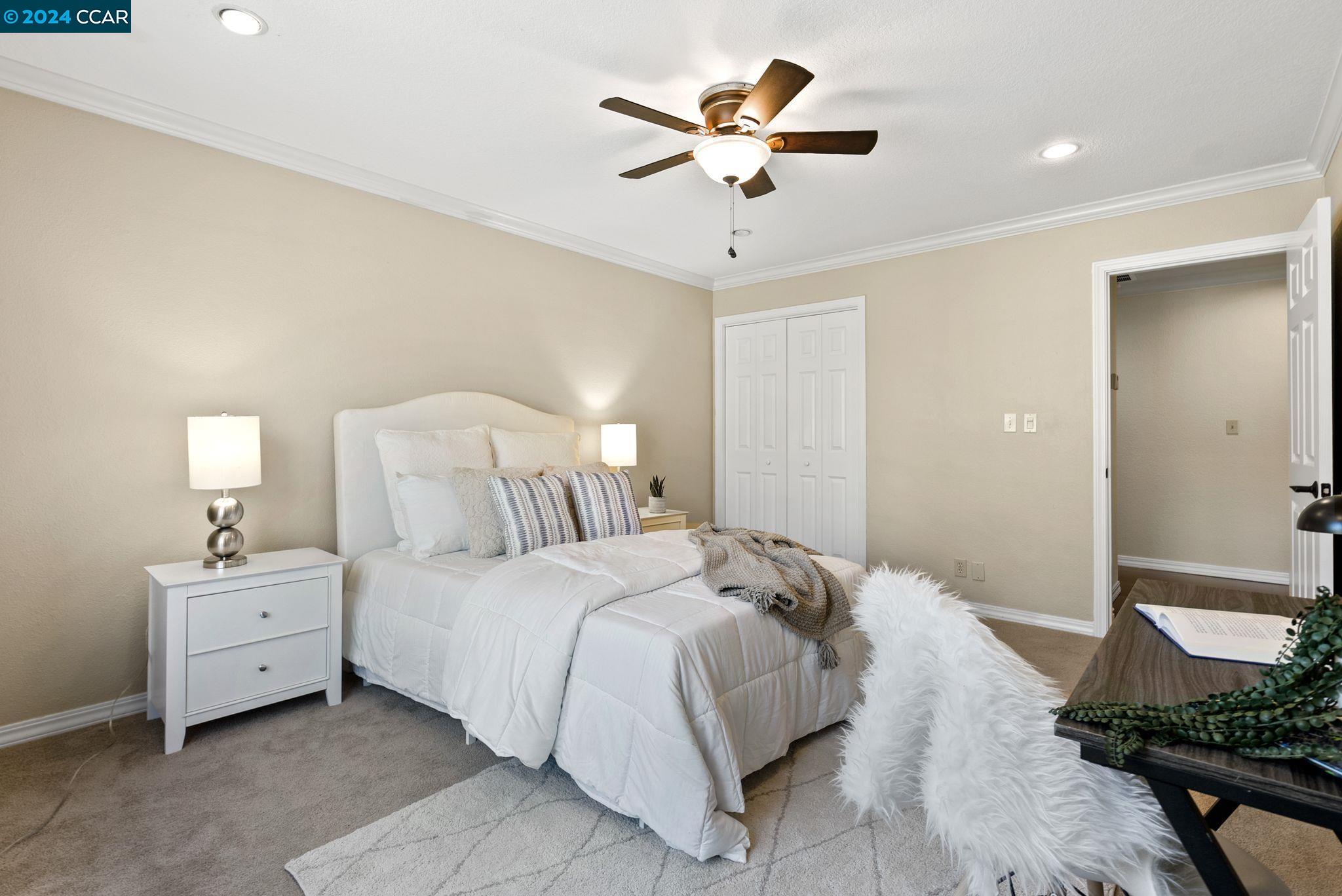 Nestled in Blackhawk, this home epitomizes traditional elegance and refined living. Outside, impeccable landscaping and stately stonework exude timeless beauty. Inside, its meticulous care is evident throughout. Step into the living room with soaring ceilings and a stately fireplace, an inviting retreat for relaxation. Adjacent to the living room, find a private dining room, conveniently located near the gourmet kitchen. Here, culinary enthusiasts will delight in stainless steel appliances, granite countertops, and ample custom cabinetry that make cooking and entertaining a joy. The spacious family room overlooks the expansive backyard, offering a cozy space for gatherings or quiet evenings by the custom wood bar. A ground floor bedroom with an ensuite bathroom provides flexibility as an office or guest space. Upstairs, discover 4 additional bedrooms, including a sumptuous primary suite that provides a tranquil retreat with a seating area, luxurious bathroom, and spacious walk-in closet. Outside, the sprawling lot gives ample room for outdoor enjoyment, complete with a saltwater pool that glistens under the California sun. Nestled against a backdrop of lush greenery and a private hillside, this home offers a sanctuary from the hustle and bustle of everyday life.
