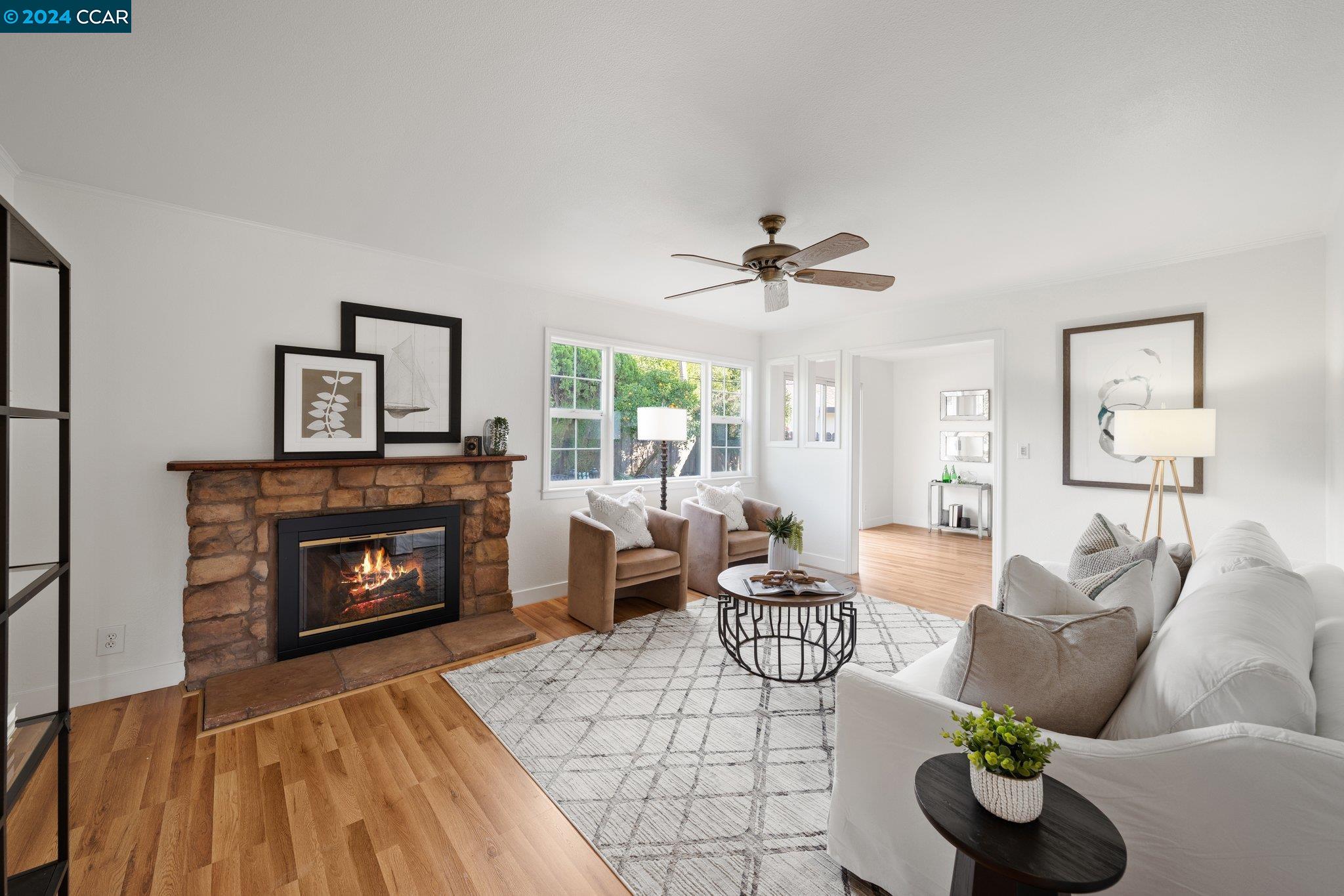 Located on a peaceful street at 8787 Bandon Drive, this charming 4-bedroom, 2-bath home in Dublin offers both comfort and convenience. Freshly updated with new paint it offers bright, sun-filled rooms and invites a warm and welcoming atmosphere. The living room features a cozy fireplace, creating a perfect spot for relaxation, while the updated bathrooms add a touch of modern elegance. The primary bedroom includes a spacious walk-in closet, offering both luxury and practicality. The large, flat lot with a lush lawn provides ample space for play and outdoor entertaining, making it an ideal setting for gatherings and quiet weekend afternoons. Close to Dublin's best amenities--schools, parks, shopping, and dining--this home combines a prime location with an inviting, move-in-ready feel. Fresh, bright, and full of charm, it's a place where comfort and convenience come together effortlessly.