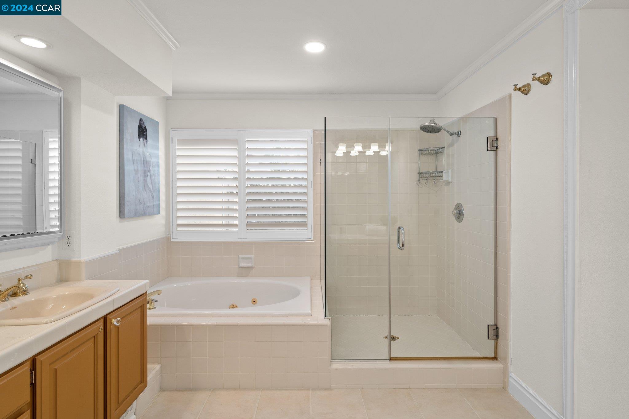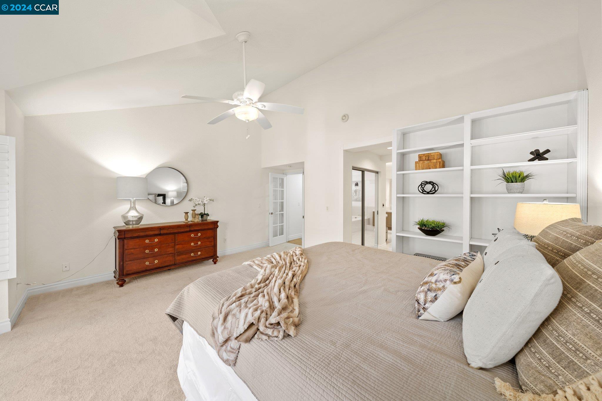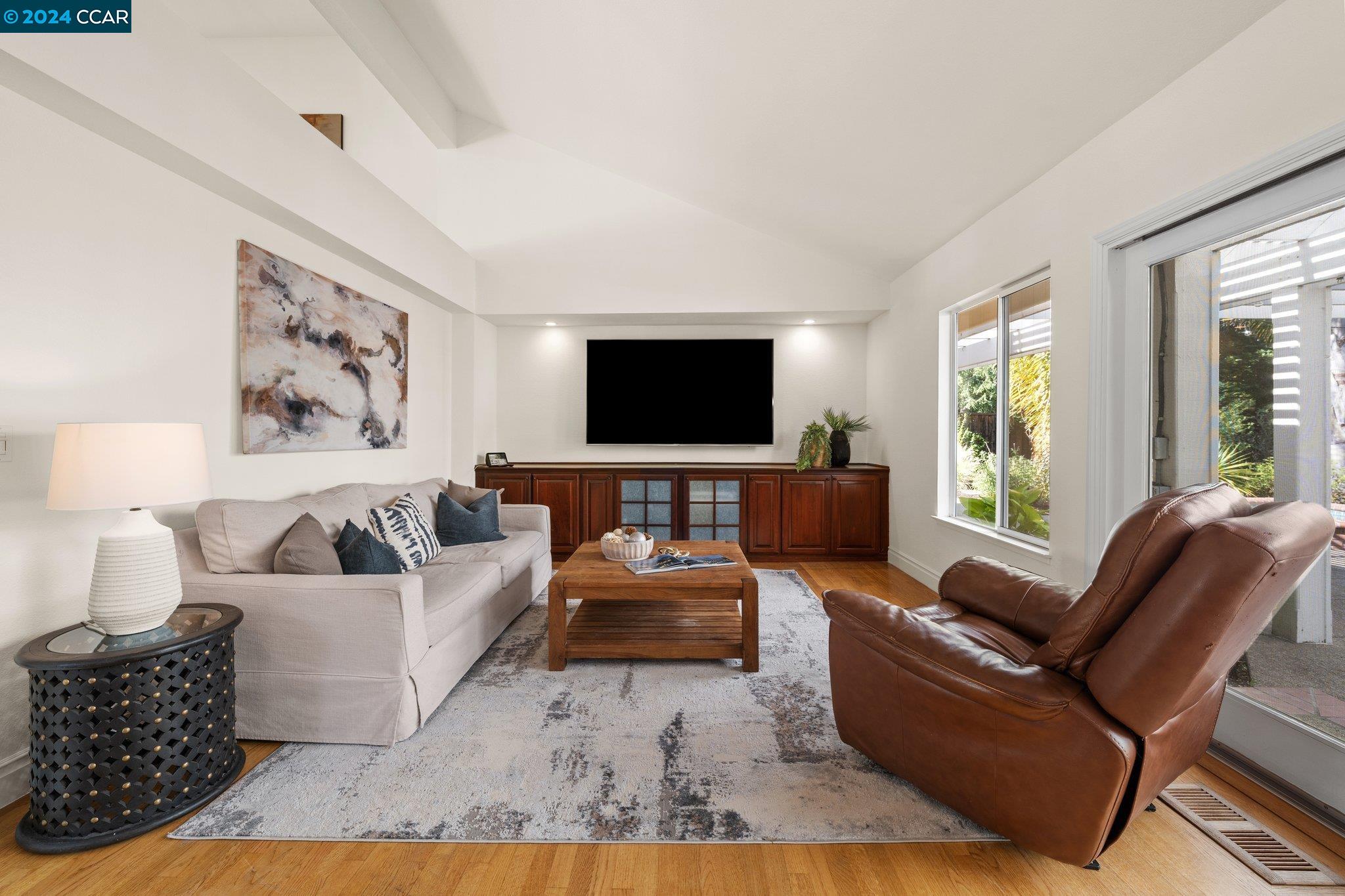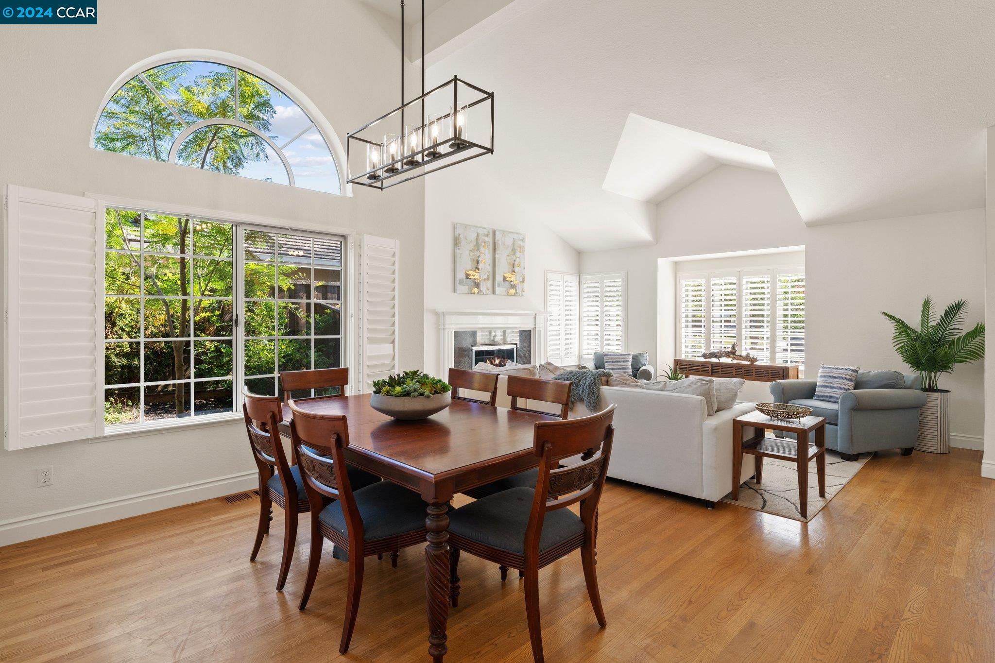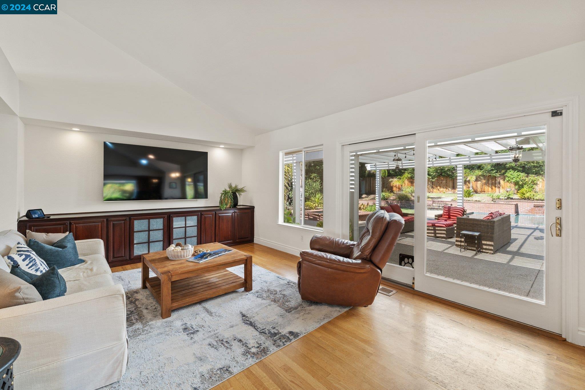 Welcome to this exceptional 4-bedroom, 2.5-bath home on a generous .35-acre lot. Nestled in a serene, private setting, this unique property offers the perfect blend of luxury and comfort. Step inside and be greeted by vaulted ceilings. The combined living & dining rooms allow plenty of space for special occasions, while the heart of the home is an open-concept living area that seamlessly connects the gourmet kitchen and family room, flowing easily to the backyard. Even everyday meals become a chef's delight in the gourmet kitchen with ample counter space, storage, a gas range, and stainless-steel appliances. The main floor features a primary bedroom with ensuite bath, providing the ultimate in privacy or functionality for multi-generational living. French doors in the primary bedroom transition perfectly to the expansive backyard. Step outside to a private oasis, where a sparkling pool and spa await. The expansive, flat lot offers endless possibilities for outdoor activities and entertaining. Stroll up the grand, curved staircase to the second floor and find three large bedrooms and another full bathroom. These rooms are light and bright, yet close the shutters and it is sure to be a cozy way to end the day. Don't miss this perfect blend of luxury, comfort, and convenience!
